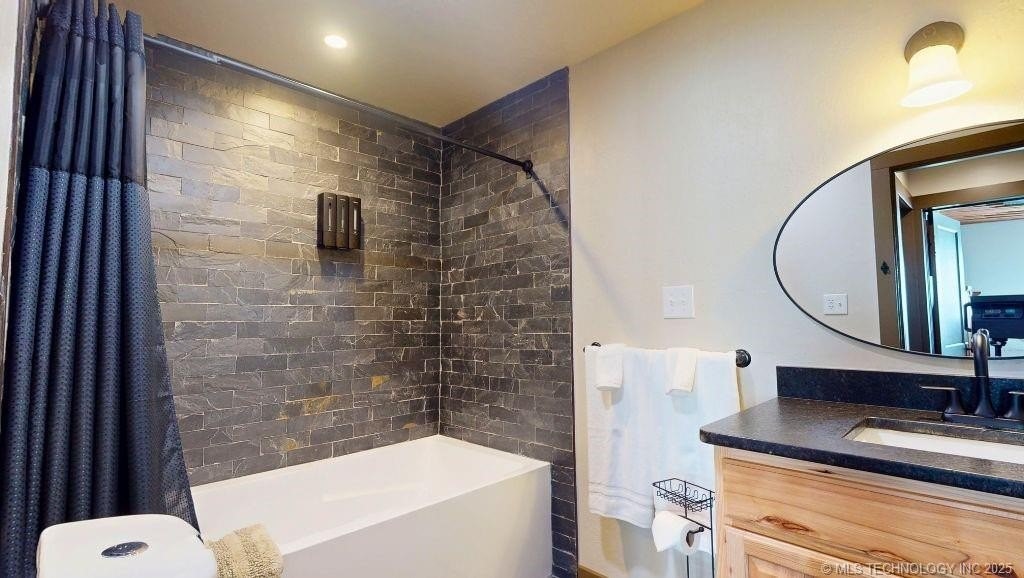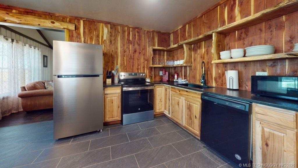 Now available for residential leasing, Cabin 3 at Turner Escape Cabins. Located at 11129 E. Colbert Drive in Davis, this fully furnished 2 bedroom, 2 bathroom cabin includes all utilities, internet, trash, and lawn care in the monthly lease amount. The home features a spacious living area with vaulted ceilings and a stone wood-burning fireplace, updated kitchen with slate flooring, stainless steel appliances, open shelving, and solid wood cabinetry. Both bathrooms are fully remodeled, one with a walk-in stone shower and the other with a soaking tub and slate tile surround. Primary bedroom features a custom wood accent wall. Exterior features include a gated entrance, large covered front and back porches, and a two-car covered carport. Situated in the Arbuckle Mountains and just minutes to Turner Falls, Arbuckle Lake, and Cross Bar Ranch. Lease is month-to-month only. Fully furnished and move-in ready.